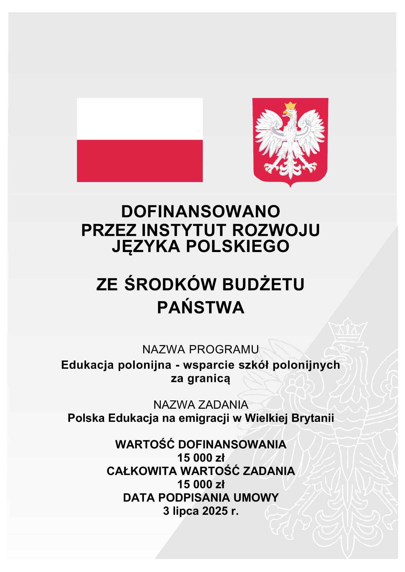 Nazwa zadania publicznego: Wsparcie nauczania języka polskiego za granicą szkół na terenie Wielkiej Brytanii(3)